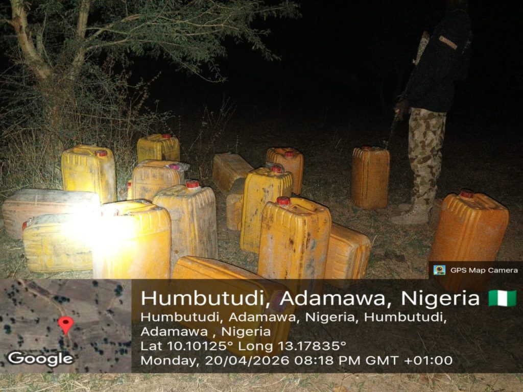 Troops of Operation HADIN KAI have intercepted a large quantity of smuggled Premium Motor Spirit (PMS) during a night patrol in Maiha Local Government Area of Adamawa State. Security sources said the operation was conducted at about 8:10 p.m. on April 21 by troops of 23 Brigade Special Battalion at Humbutudi village. The troops reportedly
